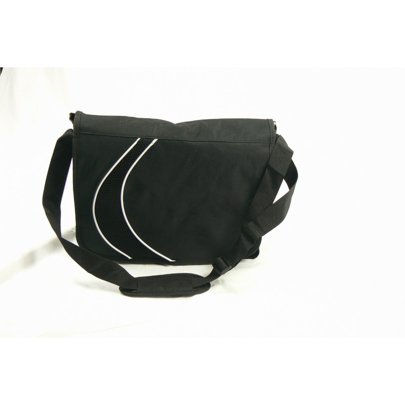 Sac bandoulière / porte documents à rabat avec fermeture par velcro, en polyester.