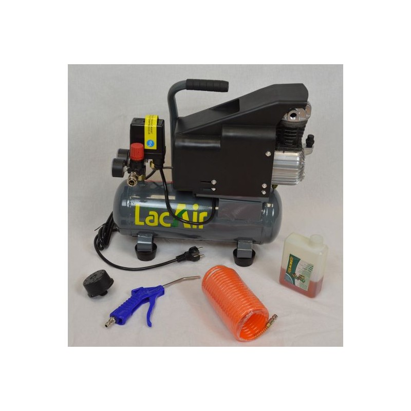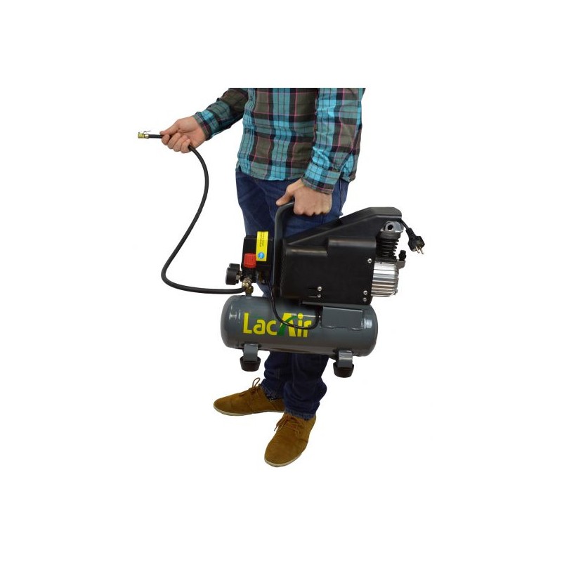 Il est muni d'un détendeur PM avec une sortie raccord rapide, contacteur manométrique, manomètre, clapet anti retour, soupape de sécurité, robinet de purge, tuyauterie aluminium, patins amortisseurs, poignée de manutention et un cordon d'alimentation de 2m.