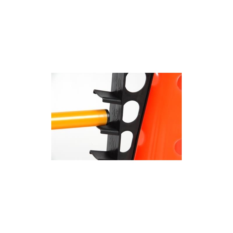 La hauteur peut varier directement sur les cônes (sans taquet) ou avec l’utilisation des taquets.