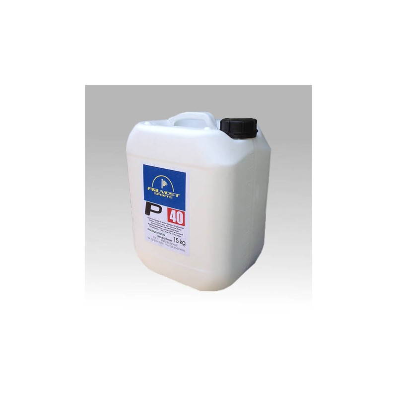 P-40 se dilue de 4 à 6 fois son volume en eau ( 2 litres + 8 à 12 litres d’eau) selon vos exigences de blancheur et de tenue.