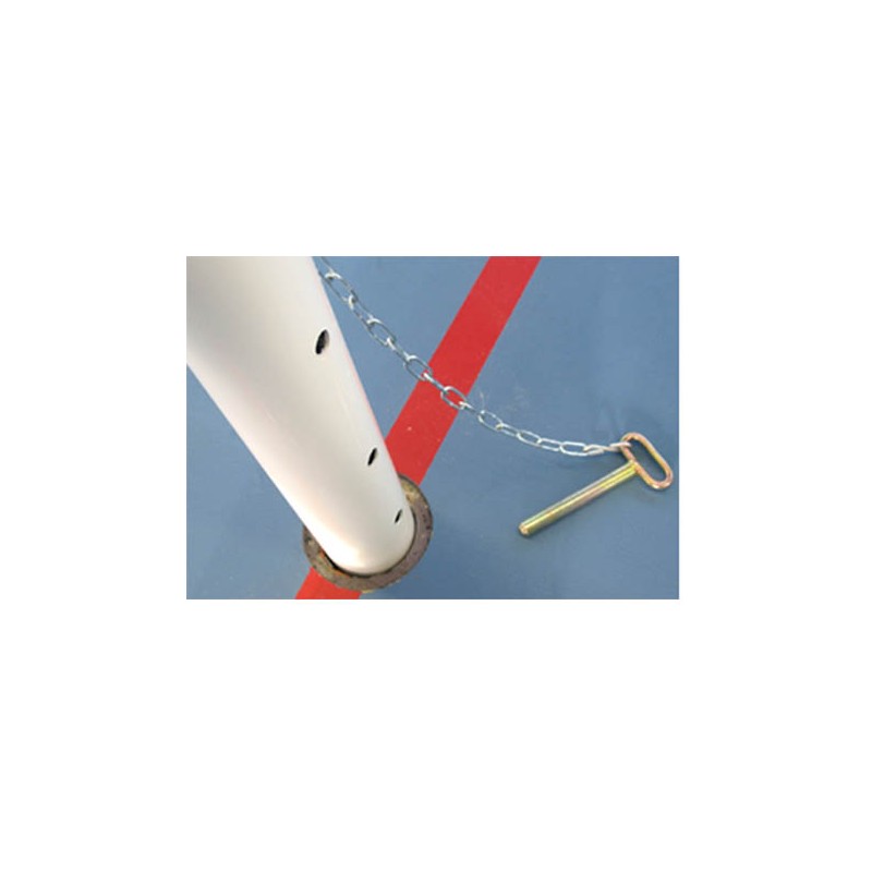 Réglage des hauteurs de filet par coulissement du poteau dans le fourreau.